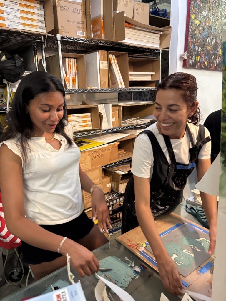 The goal of AWE is to give the budding artist the opportunity to make art that isn’t compromised by space limitations or a time frame. We encourage long-term projects and taking chances. We teach technique and problem-solving. We emphasize personal growth and expression through art. AWE is located at 54 Pearl Street in DUMBO, Brooklyn, known for its gorgeous views of the Manhattan Skyline, the Brooklyn Bridge Park, and the Manhattan and Brooklyn Bridges. The studio is about 1,400 square feet, has three windows and a skylight.